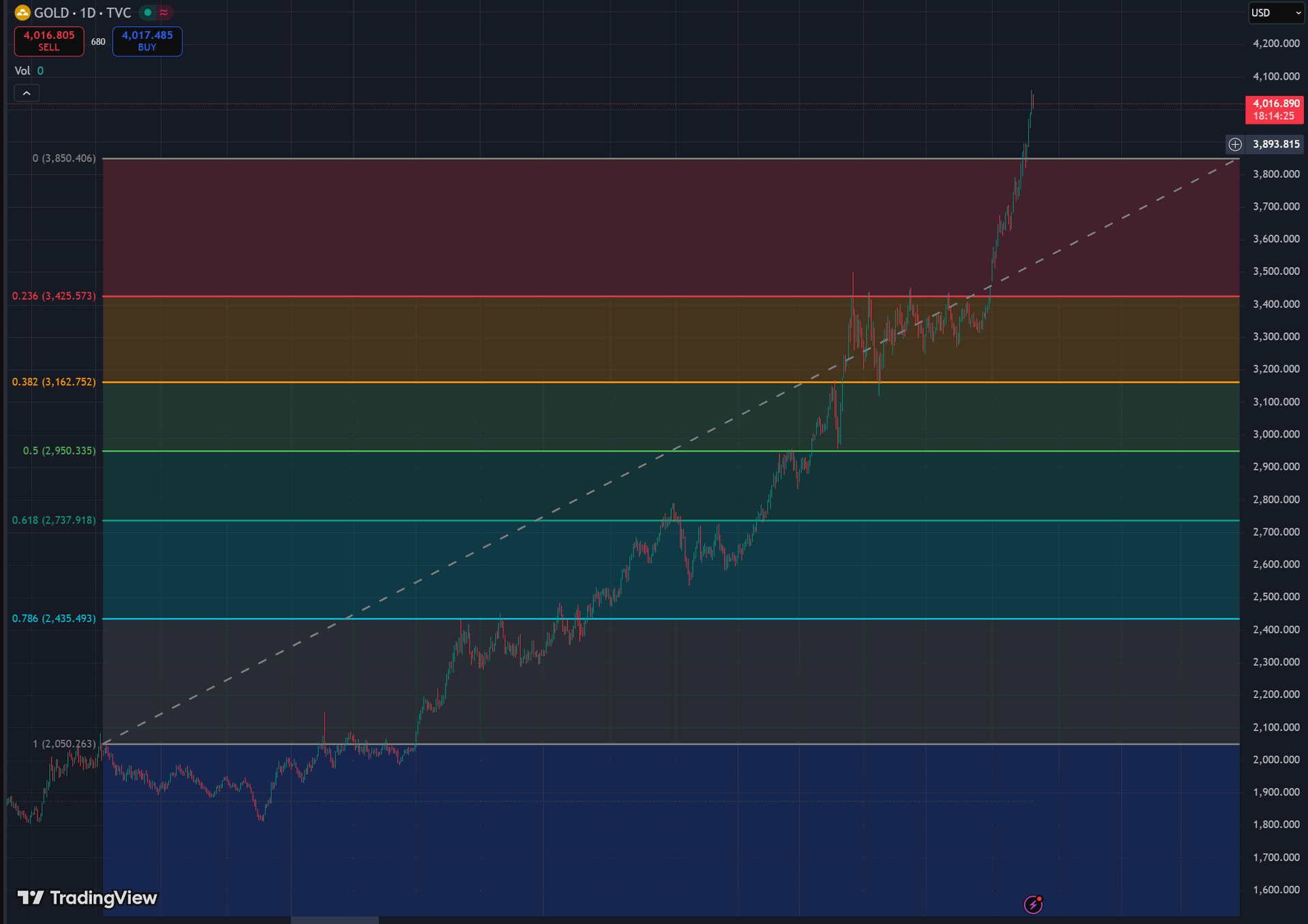 Gold's explosive move higher from $3,500 is not normal price action! Source. Tradingview.